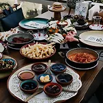 ホテル アンバ- ケ-ブ スイ-ツはビュッフェスタイルの朝食も提供しています. このホテルから歩いて5分のOld Cappadocia Cafe & Restaurantでは色々なトルコ料理を楽しめます.